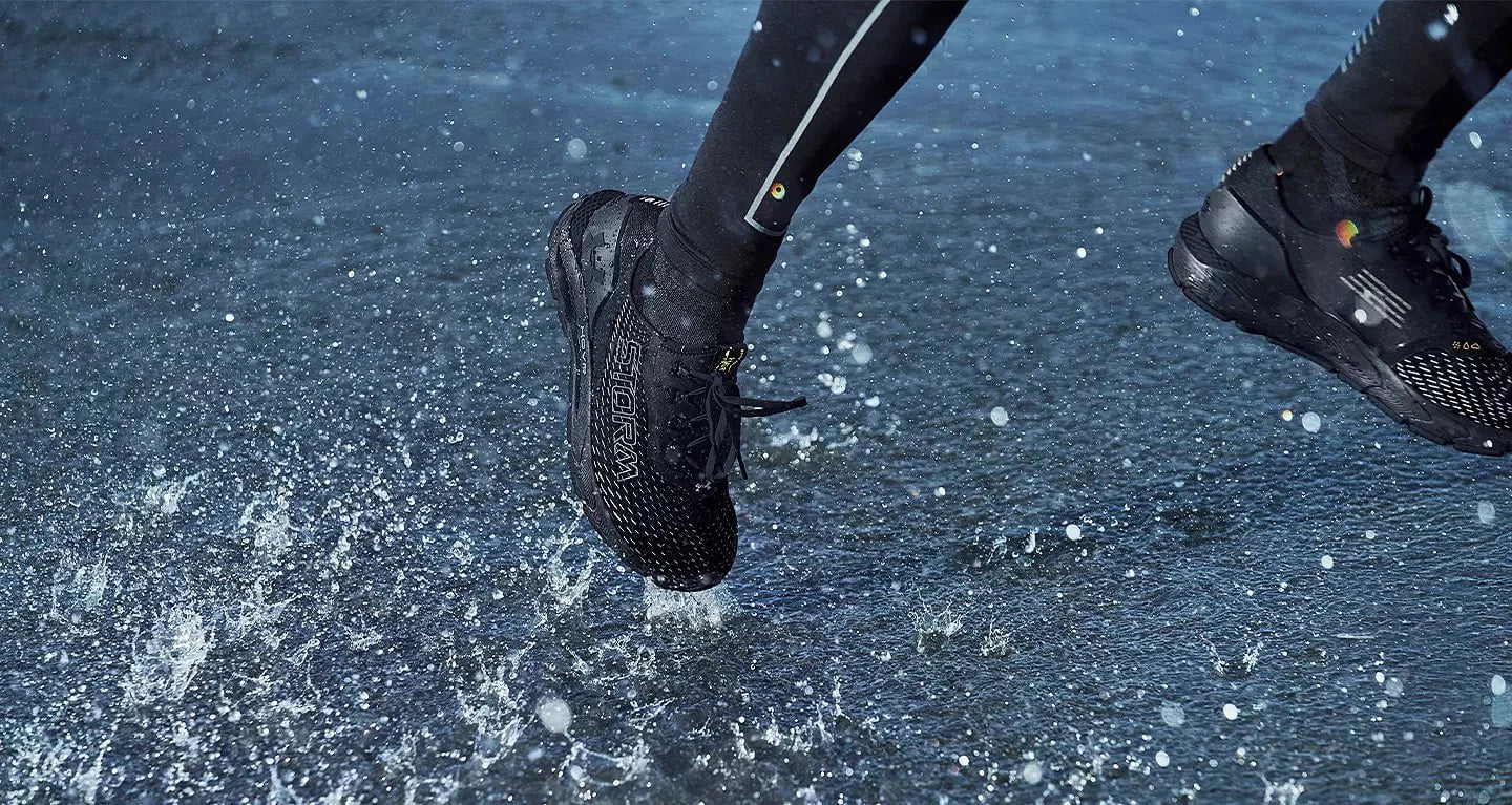 For our UA STORM collection, we utilise water-repellent technology to provide much-needed protection from water, while keeping our footwear and activewear lightweight and flexible.
